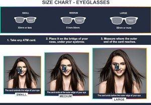 To measure, place one edge of the card at the center of your nose and see where it ends. If the card ends at the tip of your eyes, a medium sized frame would fit you perfectly. If the card width extends the eyes, a small size would be perfect for you. Just in case the card edge finishes before your eyes end, you need a (L) large-sized frame.